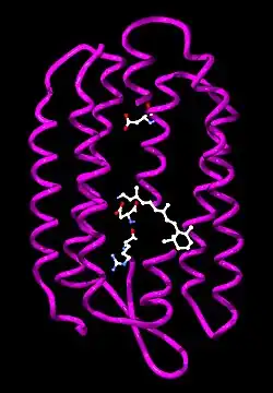 On trouve cette protéine notamment dans la membrane pourpre de l'archée halophile Halobacterium salinarum.