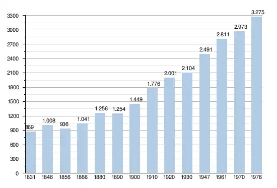• Sources : INS, Rem. : 1831 jusqu'en 1970 = recensements, 1976 = nombre d'habitants au 31 décembre[2].