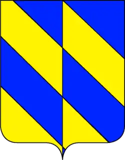 Les armes de la famille se blasonnent ainsi d'un écu parti d'or et d'azur avec deux bandes ou cotices de l'un et de l'autre et en cœur un petit écu d'argent, chargée d'une aigle noire membrée et couronnée d'or.