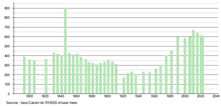 605 hab. (2022 en évolution de −5,91 % par rapport à 2016)