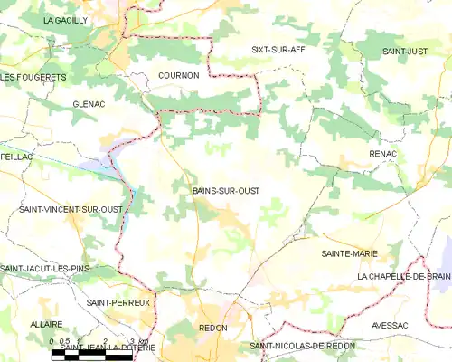 Jusqu'en 2015, Bains-sur-Oust était l'une des six communes du canton de Redon.