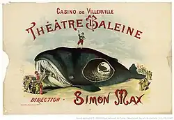 Un an plus tard, la baleine reconstituée est ramenée par train à Villerville[2]. Le corps a été artificiellement rallongé, la baleine mesurant désormais 17 m. Elle est installée en face de son casino et peut accueillir de 80 à 100 personnes selon les sources[2]. L'attraction ouvre le [2],[4] . Devant le succès du théâtre-baleine, l'attraction est rapidement déplacée sur la jetée-promenade de Trouville. Elle rejoint ensuite le Casino de Paris en novembre 1894. Elle a la double fonction de musée et de théâtre. On y trouve une collection de poissons naturalisés et de coquillages. Les spectateurs viennent y découvrir du théâtre d'ombres, des tableaux vivants de Cyprien Godebski, du cabaret et des spectacles de Guignol[2]. Max-Simon compose pour l'attraction des chansons, Les deux Jonas ou encore Allons dans la baleine. Il les chante accompagné de Jane Evel, Marie Lebey ou Félix Galipaux. Il laisser libre cours à son imagination, expérimentant des chansons imagées désignées sous le terme de « poses plastiques » ou « cantomimes »[2].