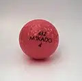 Balle rose brillant avec indication du fabricant, du modèle et chiffre "4"