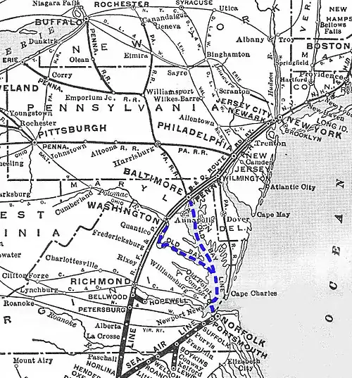 Sept ans seulement après que Robert Fulton a prouvé la possible utilisation commerciale de navires à vapeur avec son North River Steamboat (plus connu sous le nom de Clermont) en 1807, de petits navires à vapeur alimentés au feu de bois servent sur la baie de Chesapeake. Avant l'arrivée du chemin de fer et de navires à vapeur au début du XIXe siècle, les voyages par la terre étaient des entreprises terriblement longues et fastidieuses[2]. Les rivières étaient le principal moyen de transport et la plupart des villes étaient fondées près d'elles. Il en va particulièrement ainsi en Amérique du Nord, où les voyages sur de grandes distances de centaines ou même de milliers de kilomètres représentaient des mois de voyage risqué et inconfortable en diligence ou en chariot sur des pistes cahoteuses et non pavées. Dans les années 1830, des voies ferrées sont construites, mais la technologie est balbutiante et la vitesse moyenne des trains de voyageurs est seulement de 20 km/h[3]. Il faut de nombreuses années avant que les différentes lignes se relient, faisant du voyage par le rail entre différentes villes une réalité. Ce n'est pas avant 1863, par exemple, qu'il est possible de voyager entre New York et Washington, D. C., sans changer de train en chemin[4].
