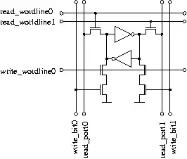 - Par conséquent les ports de lecture utilisent un transistor par cellule de bit, les ports d'écriture en utilisent quatre !