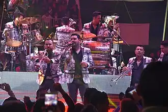 - ↑ Précédemment trombone de la La Arrolladora Banda El Limón. Trombone de la Banda MS depuis le [42].