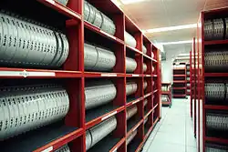 Bandes magnétiques dans une bandothèque.