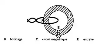Les têtes inductives représentent la grande majorité des têtes magnétiques nécessaires à l’enregistrement magnétique. Une tête inductive en anneau est formée d'un circuit magnétique de forte perméabilité conduisant le flux créé par un bobinage électrique.
