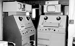 Les premiers enregistreurs Ampex vidéo[2] fonctionnaient avec des bobines ayant des rubans de 2 pouces de large. Seules les chaînes de télévision les utilisaient au début des années 1960. Une bobine d'une durée maximum de 1 h 30 pesait environ 16 kilogrammes (35 livres). Dans les années 1970 apparaissent des cassettes de 1 pouce puis de ³⁄₄ de pouce. Ceci permet une utilisation de plus en plus mobile avec les cassettes en formats U-matic (1978) et Betacam (1982).