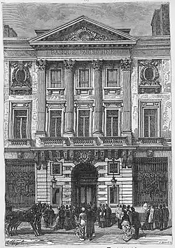 La Banque parisienne, no 7 rue Chauchat, dont la Banque de l'Union parisienne a repris les activités et le siège.