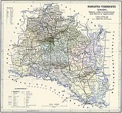 Le comté de Baranya correspondait approximativement à l'ancienne région historique du Baranya, correspondant aux plaines et marécages situés au nord de la rivière Drave et à l'ouest du fleuve Danube.