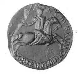 - Geoffroy III de Châteaubriant ( † vers 1206), baron de Châteaubriant[4], ayant participé à l'Assise au Comte Geoffroy en 1185, Châteaubriant est élevée au rang d'ancienne Baronnie de Bretagne, fils du précédent, épouse baronne Béatrice de Candé du Petit-Montrevault de la Baronnie de Candé.