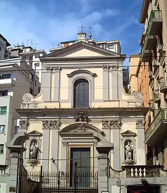 Lors des restaurations de la fin du XVIIIe siècle[7] est apparue l'exigence de décorer les portails et les structures avec du stuc qui accentue la décoration plastique de la devanture, comme dans l'église Santa Teresa a Chiaia, en supprimant en même temps tous les chromatismes du piperno.