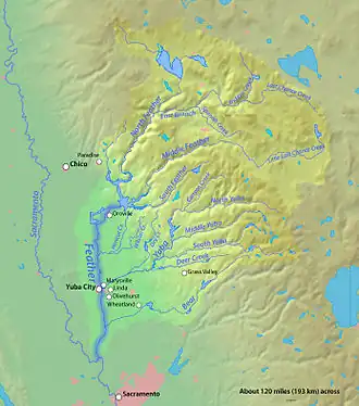 L'exutoire est Indian Creek (en), un affluent de l East Branch North Fork Feather River (en) .