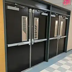 La présence de ce dispositif sur les sorties de secours fait souvent partie des normes de sécurité dans un établissement recevant du public[2].