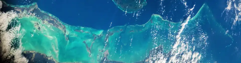 Le Belize et sa barrière de corail vus par satellite en 2001. | |
