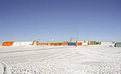 La base Concordia en . Le camp d’été est visible à l’arrière-plan du camp d’hiver. | ||