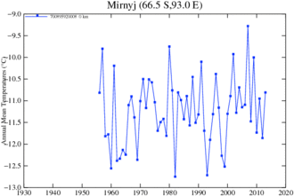 Mirny est une base scientifique russe située en Antarctique sur la mer de Davis. Elle a été ouverte en 1956 et peut accueillir près de 170 personnes. Ses domaines d'activités scientifiques principaux sont la glaciologie, la sismologie et la météorologie ainsi que l'observation des aurores australes, des rayons cosmiques et de la biologie marine.