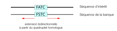 - le balayage de la banque avec le dictionnaire ainsi constitué. Chaque fois que BLAST identifie une coïncidence dans la banque, il tente d'étendre l'homologie en amont et en aval du k-uplet initialement trouvé ;