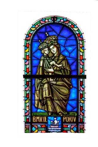Sa dénomination proviendrait du nom du quartier où elle a été construite « le Port », en occitan « Lo Pòrt », dérivant lui-même du latin portus, et qui signifient tous deux « l'entrepôt »[2]. C'était l'endroit où l'on apportait et stockait les marchandises[3]. En auvergnat, on disait Nòstra-Dama dóu-Pòrt[4]. Dans les parlers plus méridionaux se trouve la forme Nòstra Dòna del Pòrt[5].