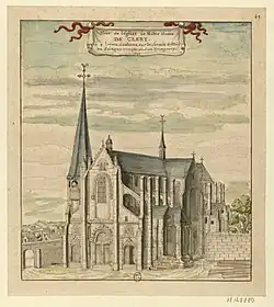 - ↑ « Gravure de l'église par Louis Boudan », notice no AP68P01091, sur la plateforme ouverte du patrimoine, base Mémoire, ministère français de la Culture, Veüe de l'église de Nostre Dame de Cléry à 4 lieues d'Orléans, sur le chemin de Blois en Sologne, presque vis-à-vis Beaugency // 1699 : [dessin / [Louis Boudan]] sur Gallica