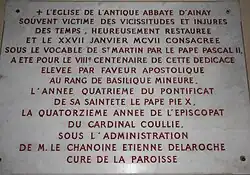 L'ancienne église abbatiale, puis paroissiale Saint-Martin d'Ainay est élevée au rang de basilique mineure par le pape saint Pie X le .