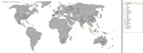 Il est également possible de voir des conflits autour des zones minières en Afrique, cependant il y a des différences de revendications. En Amérique latine la conservation de l'environnement était la cause de la plupart des revendications, cependant en Afrique il s'agit plutôt de problèmes sociaux-économiques. L'Afrique exporte énormément ses matières mais consomme une petite partie de ce qu'elle produit (idem pour l'Amérique latine qui ne consomme que 13 % des métaux de base qu'elle produit)[24].