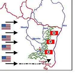 - ↑ Seventh Army History, Phase Three, The Drive Through the Vosges to the Rhine, p. 444-446, 472-476
