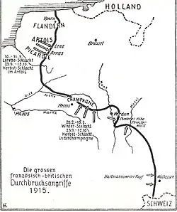 - ↑ Georges Brun, « La guerre en 1915 : guerre de position et grandes offensives (1ère partie) », sur crdp-strasbourg.fr, .