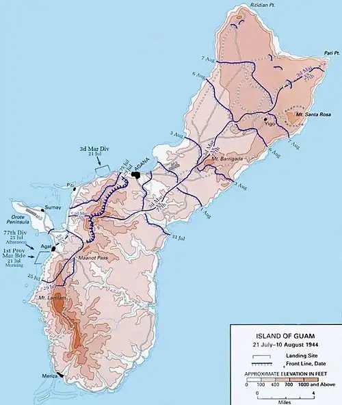 La conquête de Guam a eu lieu dans le cadre de la conquête des îles Mariannes et a eu lieu après les batailles de Saipan et de Tinian.