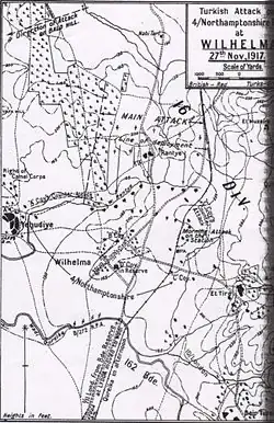 Le 27 novembre à 17h00, la 16e division mène une attaque à Wilhelma, village de colons allemands près de l'actuelle Tel-Aviv. Elle est repoussée par un feu nourri de mitrailleuses et d'artillerie de campagne. Une deuxième attaque, le soir du 28, s'empare d'une position de la 2nd Light Horse Brigade australienne mais, au matin du 29, les attaquants sont pris en enfilade sous les tirs anglo-australiens : 3 officiers, 147 soldats et 4 mitrailleuses des Ottomans sont capturés[28],[29].