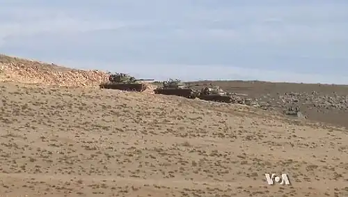 Le 29 septembre, les forces djihadistes progressent à moins de cinq kilomètres au sud et au sud-est de Kobané. L'EI tire 16 roquettes sur la ville, tuant au moins trois civils. Le même jour, l'armée turque déploie une quinzaine de chars sur sa frontière près de Kobané. Le gouvernement turc évoque alors la possibilité de participer militairement à la coalition contre l'État islamique[93],[94],[95],[96]. Selon l'OSDH, les combats du 29 à Kobané font au moins neuf morts chez les Kurdes et six tués du côté de l'EI[97].