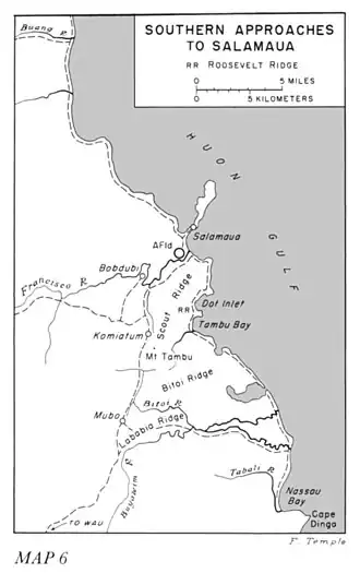 Après les combats autour de Wau, les Japonais se retirent sur les hauteurs autour de Mubo, où ils sont suivis par des éléments de la 17e brigade australienne. Fin avril et début mai, les Australiens tentent à plusieurs reprises de prendre plusieurs positions japonaises autour de Mubo, mais sont ensuite refoulés par les Japonais qui se battent obstinément pour maintenir leurs positions. Début mai, les Japonais lancent une importante contre-attaque qui tombe contre une compagnie australienne isolée, qui parvient à repousser l'attaque et à infliger de lourdes pertes. Après l'échec des mouvements de flanc début juillet, les efforts australiens pour sécuriser Mubo sont renouvelés et les Japonais sont finalement contraints de se retirer de la région vers le mont Tambu à la mi-juillet.