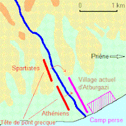 Bien que les Perses tinssent leurs positions pendant un temps, ils finirent par rompre et fuirent vers leur camp. Les Grecs les poursuivirent et engagèrent le combat avec les Perses qui s'étaient regroupés dans le camp, tandis qu'une partie de l'armée perse fuyait déjà le champ de bataille. Finalement, l'aile gauche arriva et attaqua les Perses par le côté, les mettant en déroute.