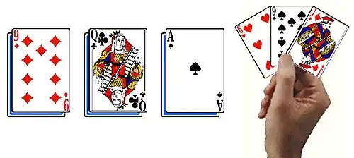 La première personne à jouer est le joueur placé à la gauche du donneur. À ce stade de la partie, le joueur peut choisir de poser une, deux ou trois cartes sur la table, du moment que celles-ci sont de même valeur (la couleur n'importe pas). En outre, aussi longtemps qu'il reste des cartes dans la pioche, un joueur doit toujours posséder 3 cartes en main. Ainsi, après avoir déposé ses cartes, le joueur reprend dans la pioche le nombre nécessaire de cartes afin de compléter sa main.