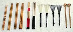 Existent aussi les rods (en français « fagots »), fins rondins de bois liés qui s'utilisent comme des baguettes et qui permettent de contrôler la frappe plus facilement puisque le poids est moindre. Le son produit est ainsi intermédiaire entre celui des baguettes et des balais. Cependant, la durée de vie d'une paire de rods est assez courte.