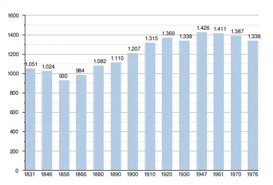 • Sources : INS, Rem. : 1831 jusqu'en 1970 = recensements, 1976 = nombre d'habitants au 31 décembre[2].