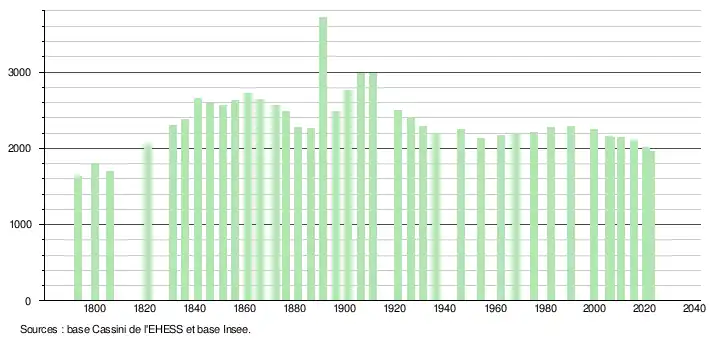 - ↑ Fiches Insee - Populations de référence de la commune pour les années 2006, 2007, 2008, 2009, 2010, 2011, 2012, 2013, 2014, 2015, 2016, 2017, 2018, 2019, 2020, 2021 et 2022.