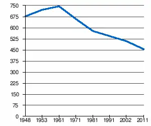 - 1 2 (sr + en) « Livre 20 : Vue d'ensemble comparative de la population en 1948, 1953, 1961, 1971, 1981, 1991, 2002 et 2011, données par localités) » [PDF], pages du recensement de 2011 en Serbie - Institut de statistique de la république de Serbie, (consulté le )
