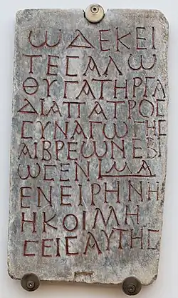 Inscription funéraire de Salo, fille de Gaudias (celui-ci étant le fondateur de la synagogue antique). Pierre du IIIe s., catacombes de Monteverde à Rome.