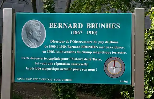 - ↑ Bernard Brunhes, « Sur la direction de l’aimantation permanente dans une argile de Pontfarein », Comptes rendus de l’Académie des sciences, vol. 141, , p. 567-568.