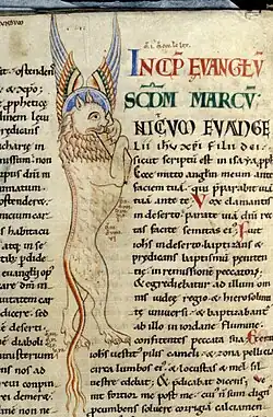 Issu de traditions celtiques et asiatiques, le dragon apparaît dès l'art paléochrétien. On le retrouve dans l'art byzantin, les icônes slaves, les gargouilles et les manuscrits enluminés[60].