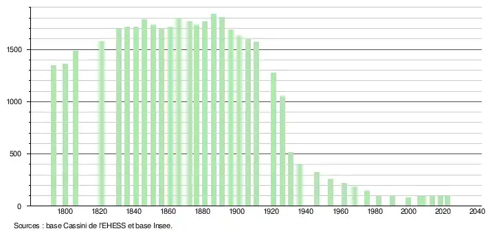 - ↑ Fiches Insee - Populations de référence de la commune pour les années 2006, 2007, 2008, 2009, 2010, 2011, 2012, 2013, 2014, 2015, 2016, 2017, 2018, 2019, 2020, 2021 et 2022.