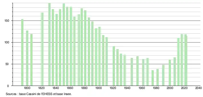 - ↑ Fiches Insee - Populations de référence de la commune pour les années 2006, 2007, 2008, 2009, 2010, 2011, 2012, 2013, 2014, 2015, 2016, 2017, 2018, 2019, 2020, 2021 et 2022.