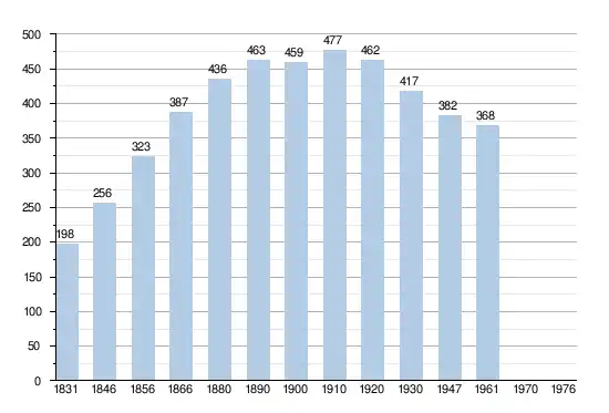 • Sources:INS, Rem:1831 jusqu'en 1970=recensements, 1976= nombre d'habitants au 31 décembre