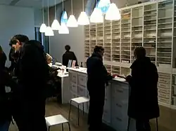 Quelques livres de la bibliothèque : Agam vs Absalom d'Alexandre Friederich, Paresse de Jacques Jouet, Recueil, de Claude-Hubert Tatot, Le voleur, de Hubert Renard[4], Condensation de Vivanne Van Singer, Cigarillos, d'Elisabeth Llach, Animaux de Marcel Miracle.