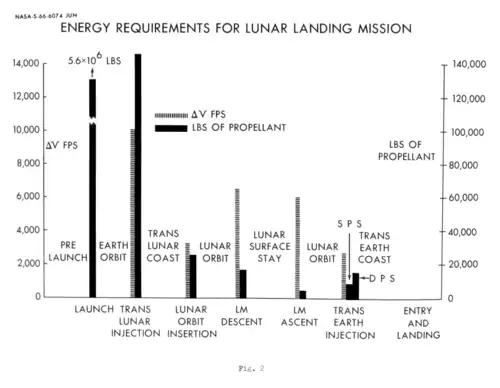 L'image ci-contre donne le delta-v requis pour différentes manœuvres à propulsion conventionnelle[5],[7]. [Note 1]