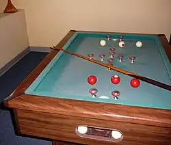 - Si le joueur sort une de ses boules du billard, la boule sortie est replacée derrière un des bouchons gardant le but du joueur ayant sorti sa boule[2] et le joueur adverse a le droit de joueur deux fois de suite[2].