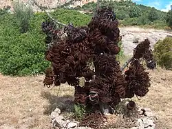 Il est devenu presque impossible de trouver de grands bois à feuilles persistantes méditerranéennes, car ils sont exploités depuis des millénaires pour la production de bois de chauffage et de charbon de bois. La transformation en garrigue n'est pas seulement causée par la coupe mais également la dégradation du sol, généralement due à la pression anthropique, provoquée par des incendies répétés ou un pâturage excessif, en particulier des chèvres[2],[5].