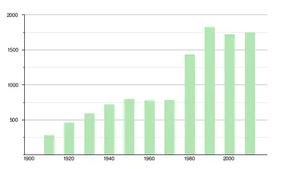 | 1930 | 587 | ▲ +27,89 % | |